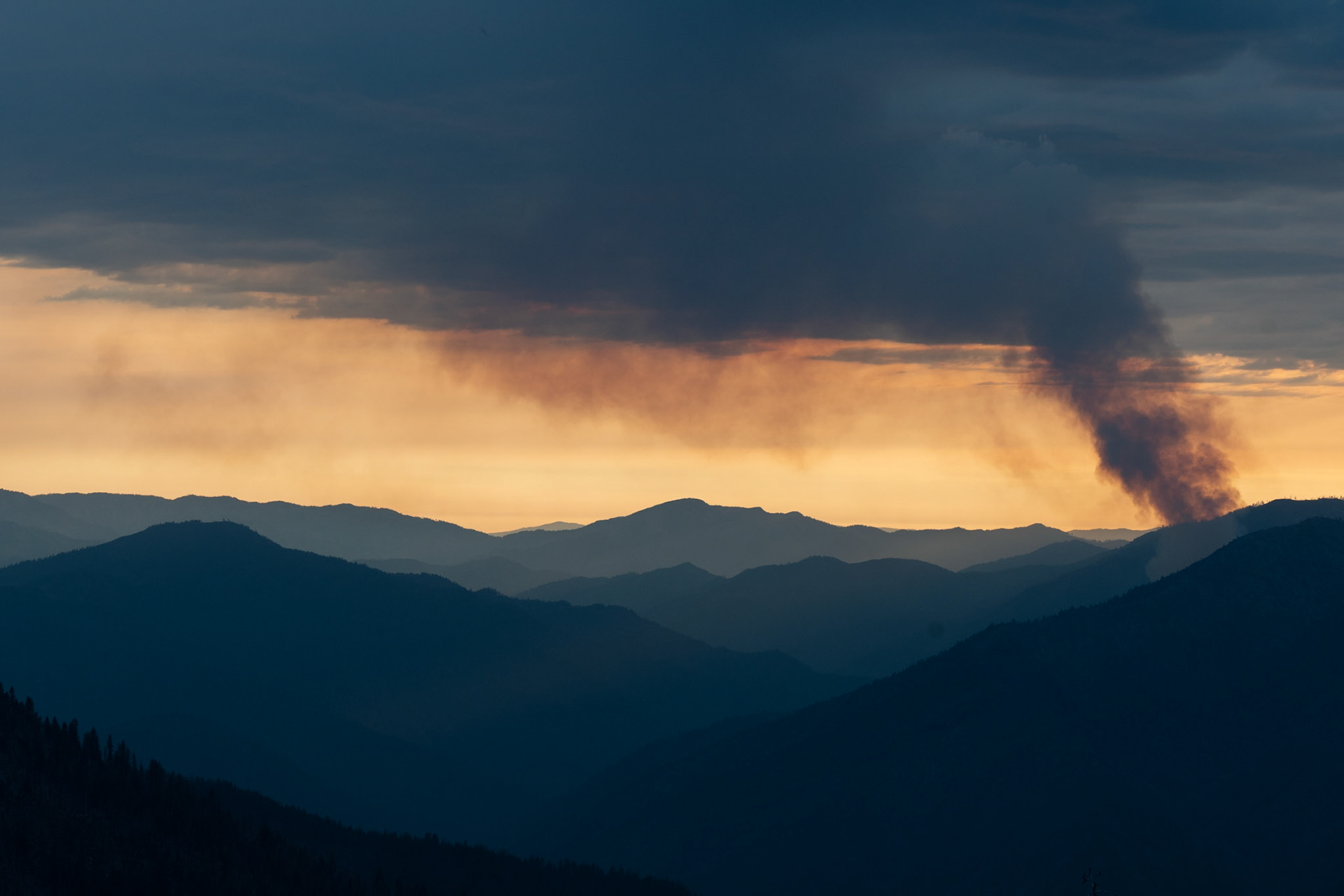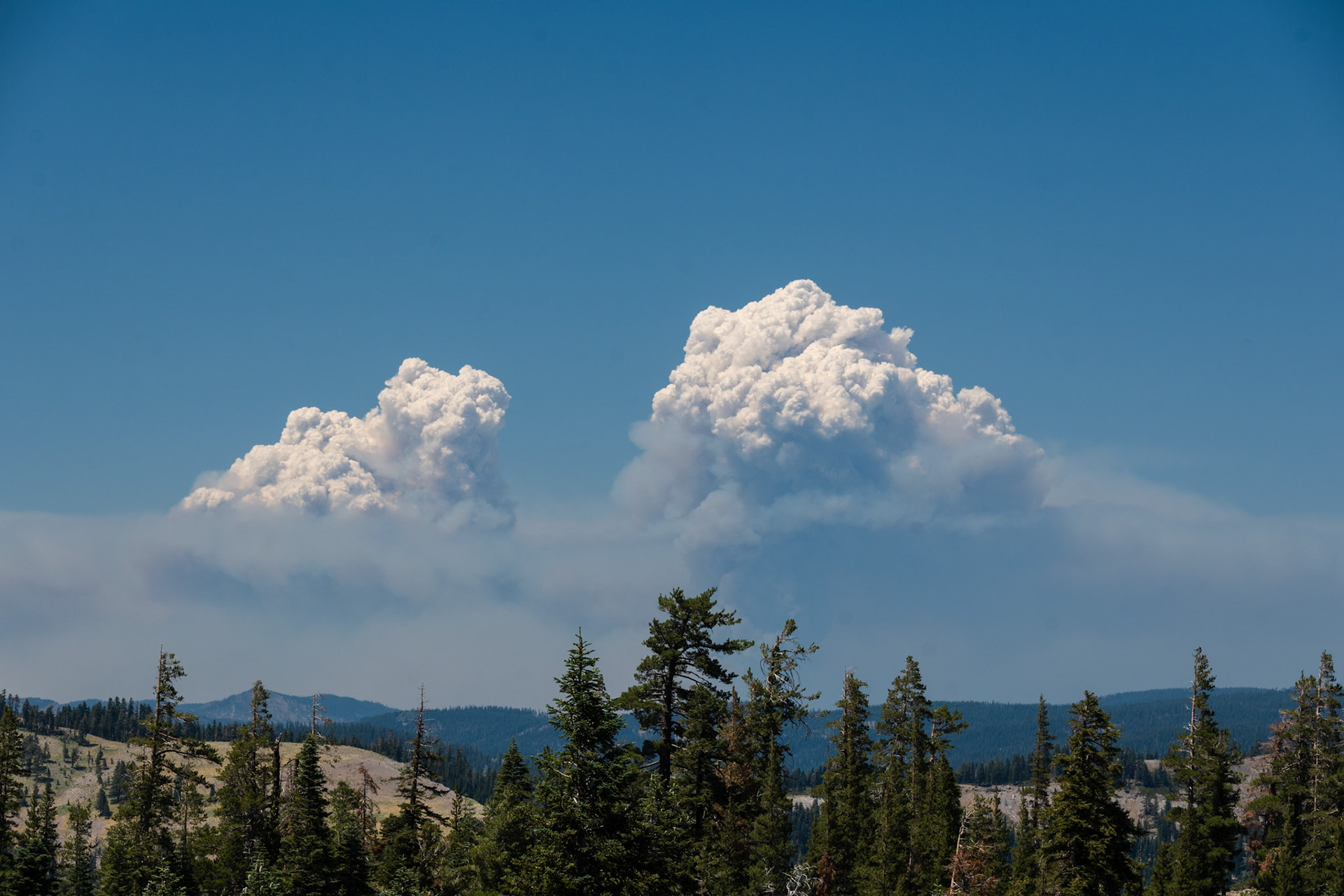 Beginning of the Tamarack Fire south of Lake Tahoe. This small blaze grew to burn more than 300,000 acres.