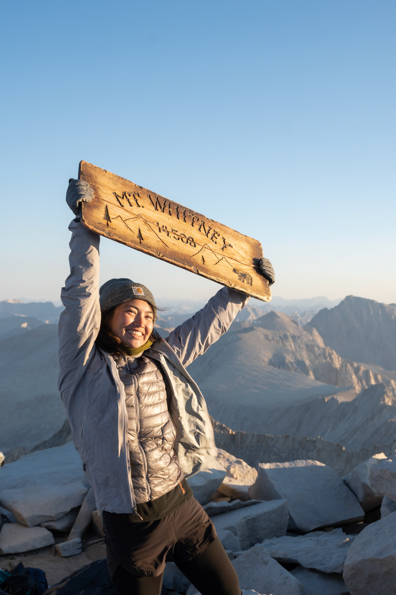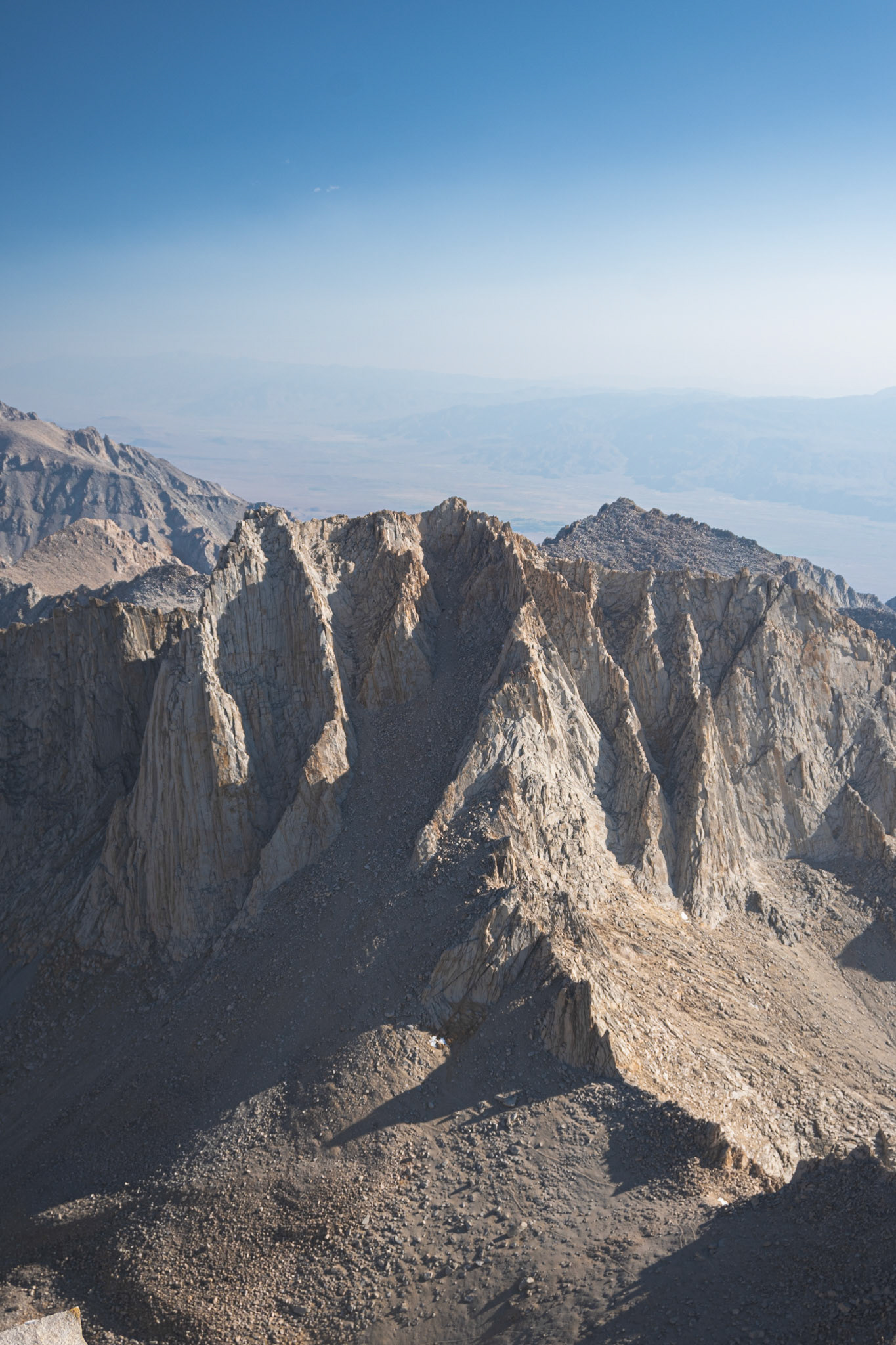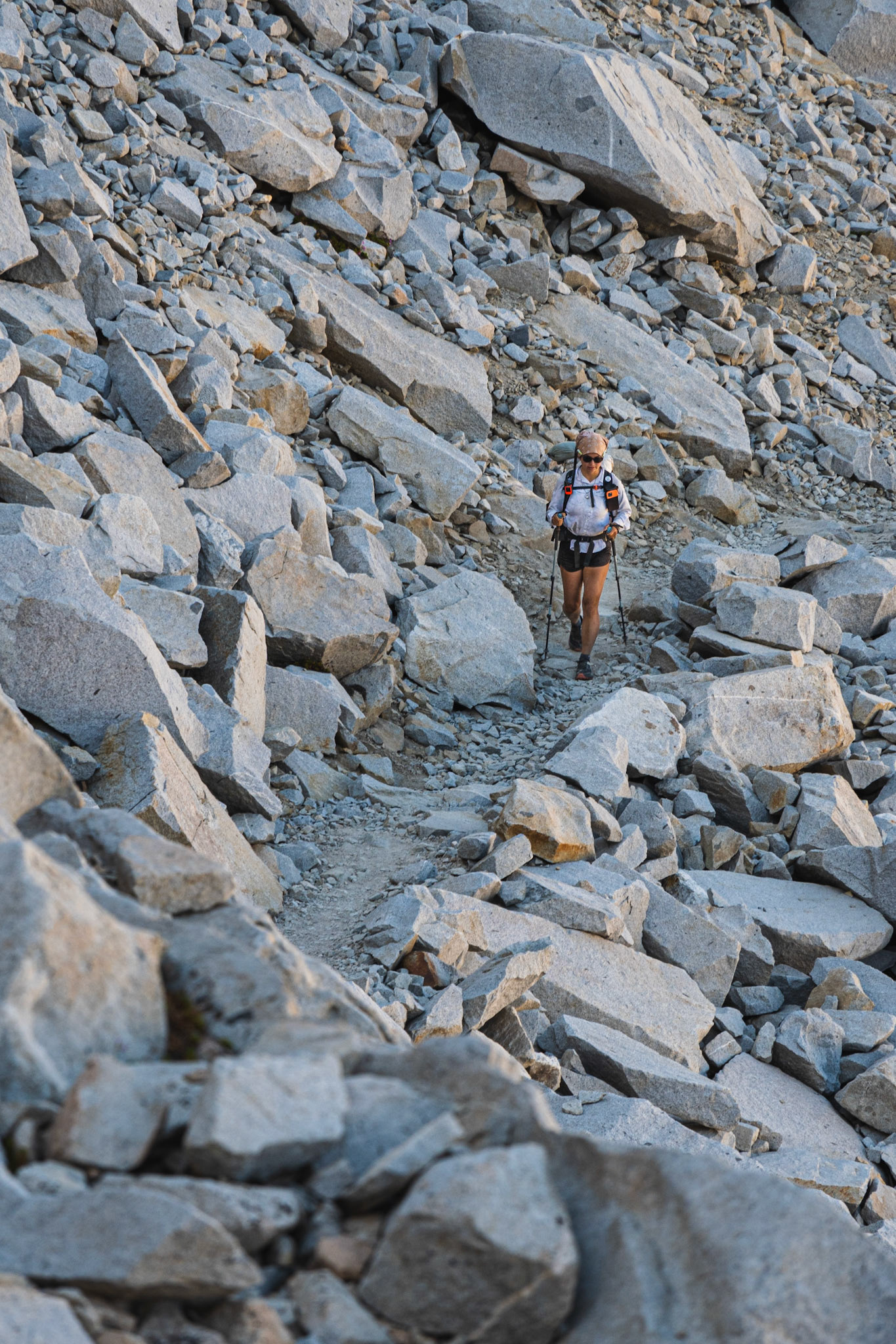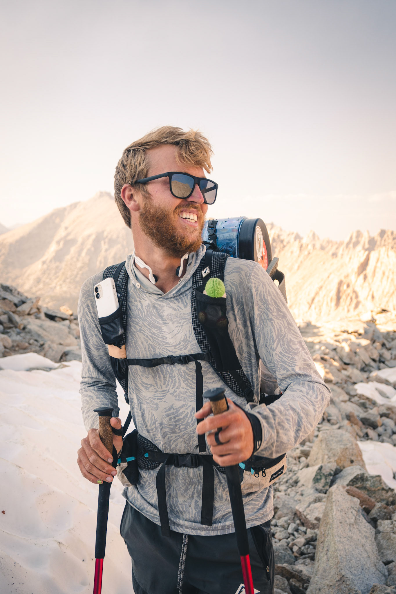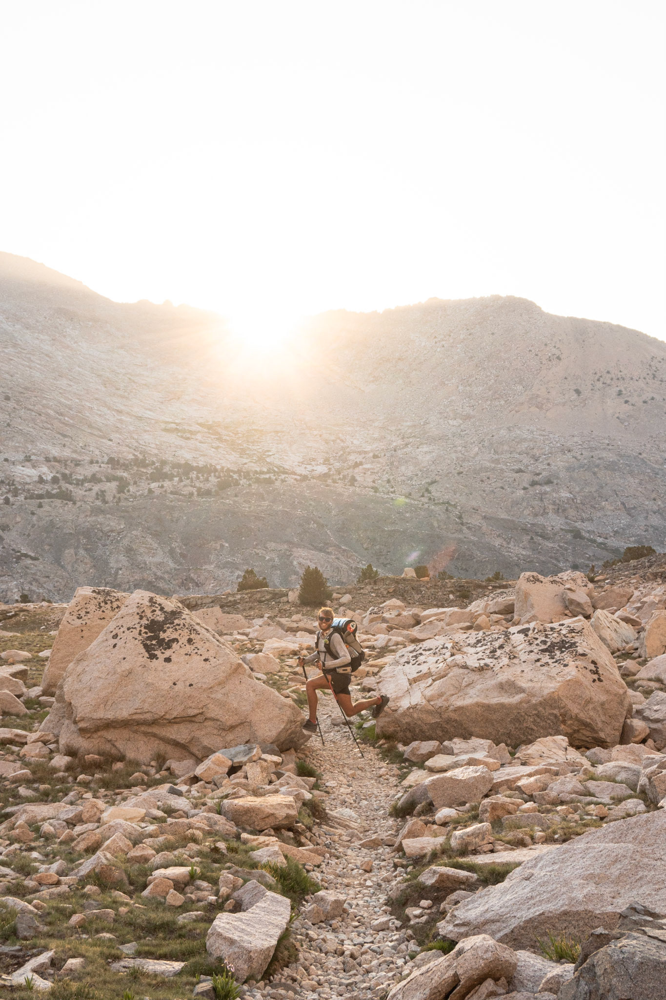 Spencer hiking down from summit of Mount Whitney.