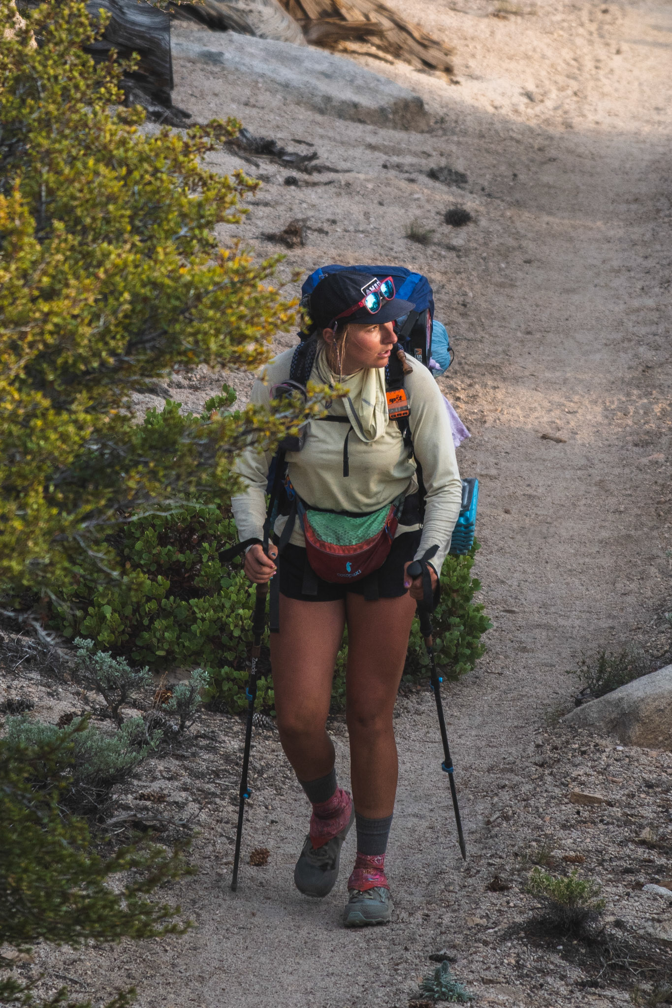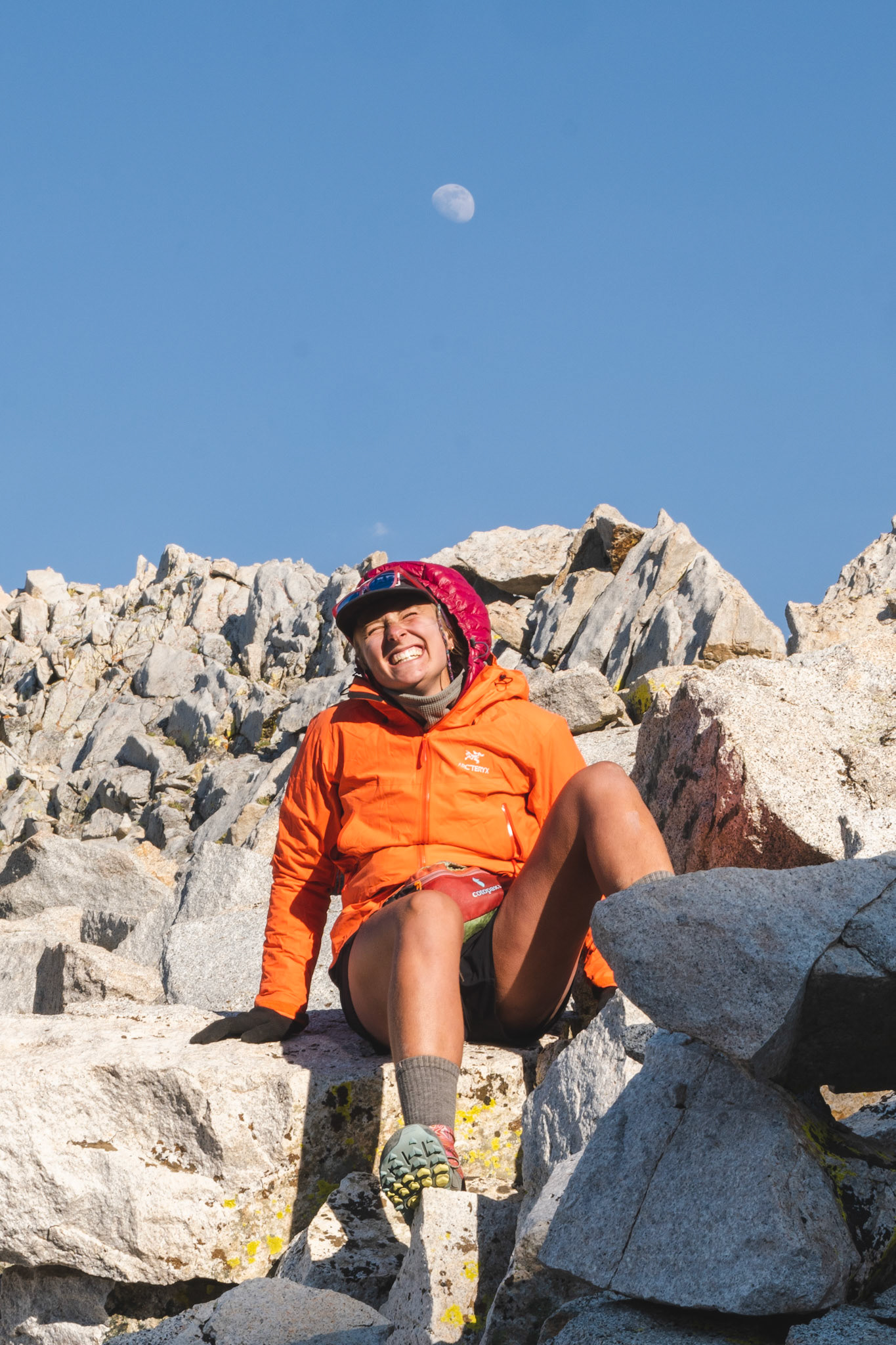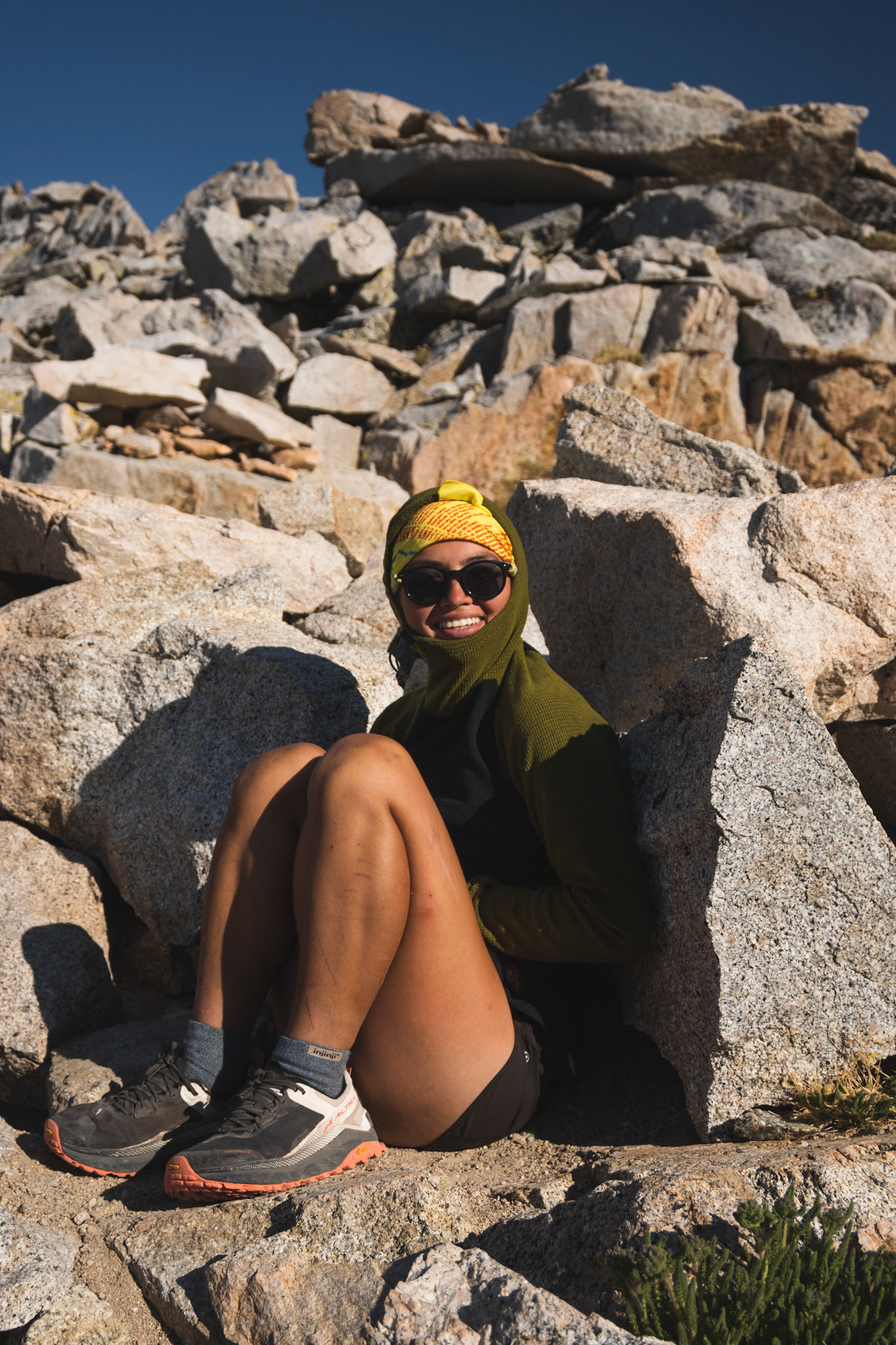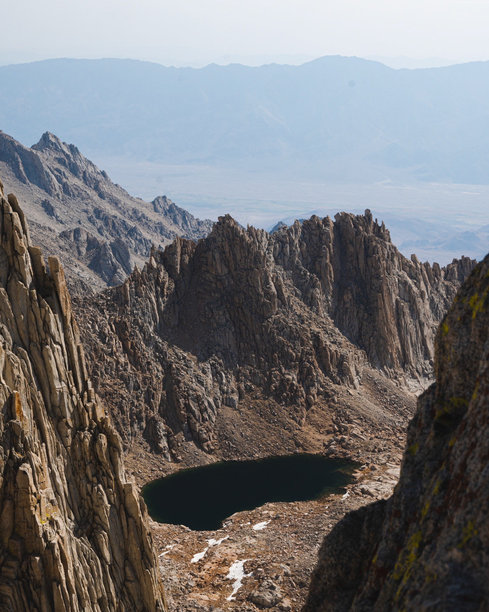 Spencer hiking down from summit of Mount Whitney.