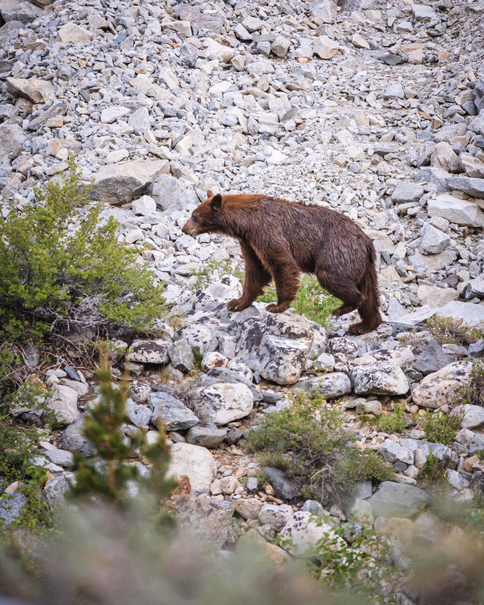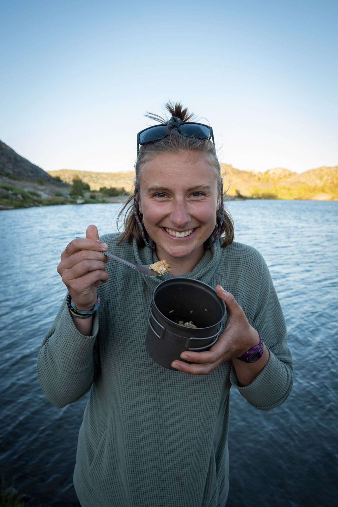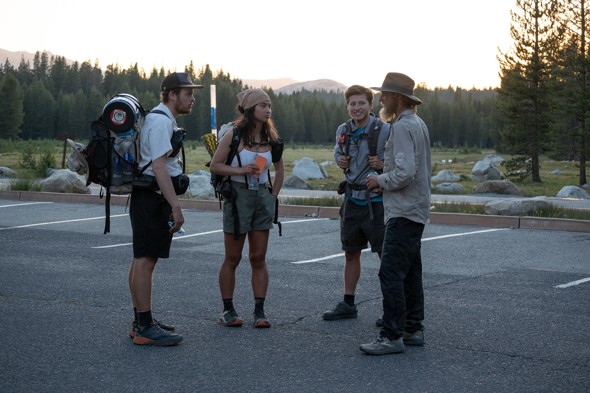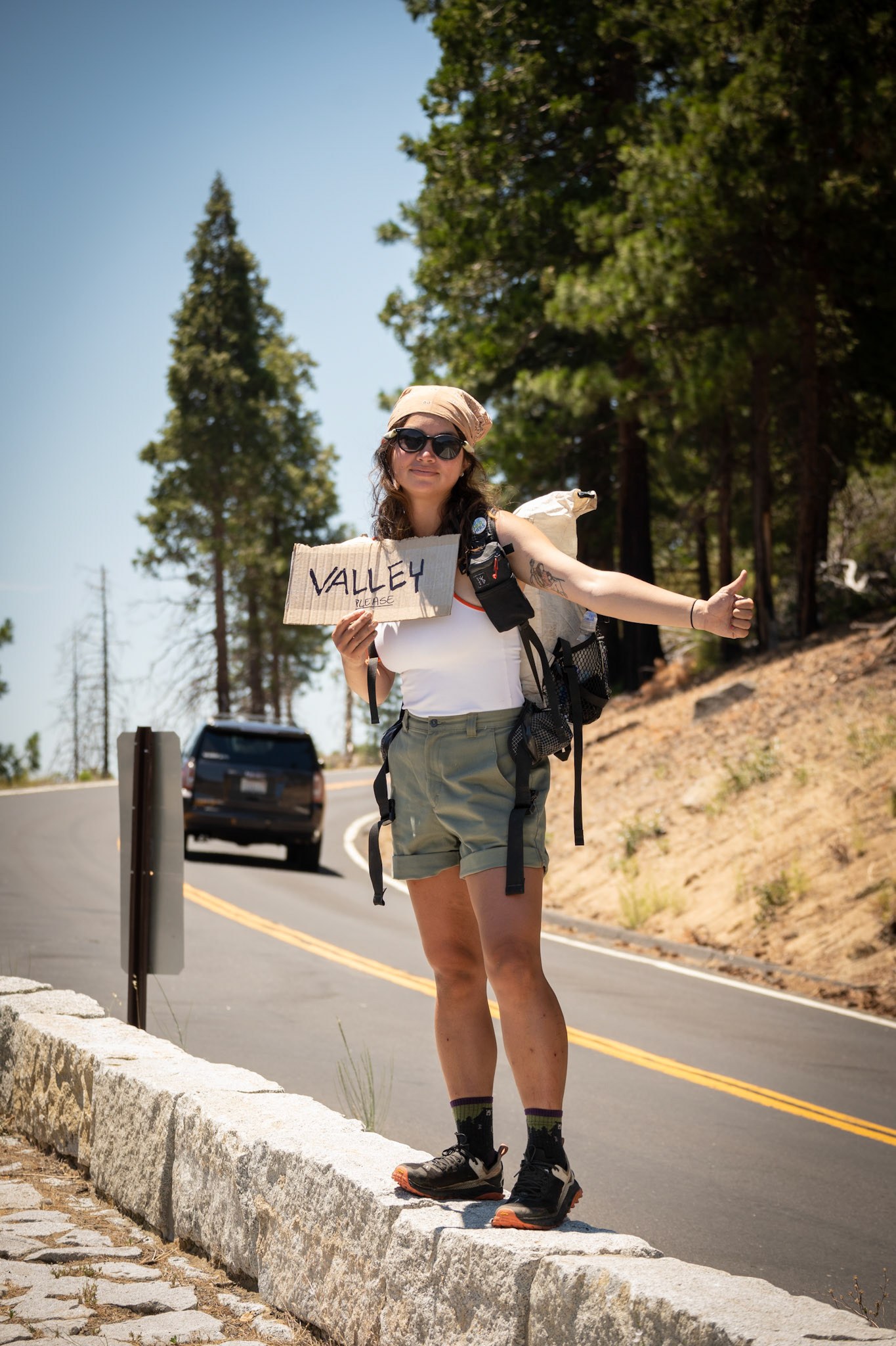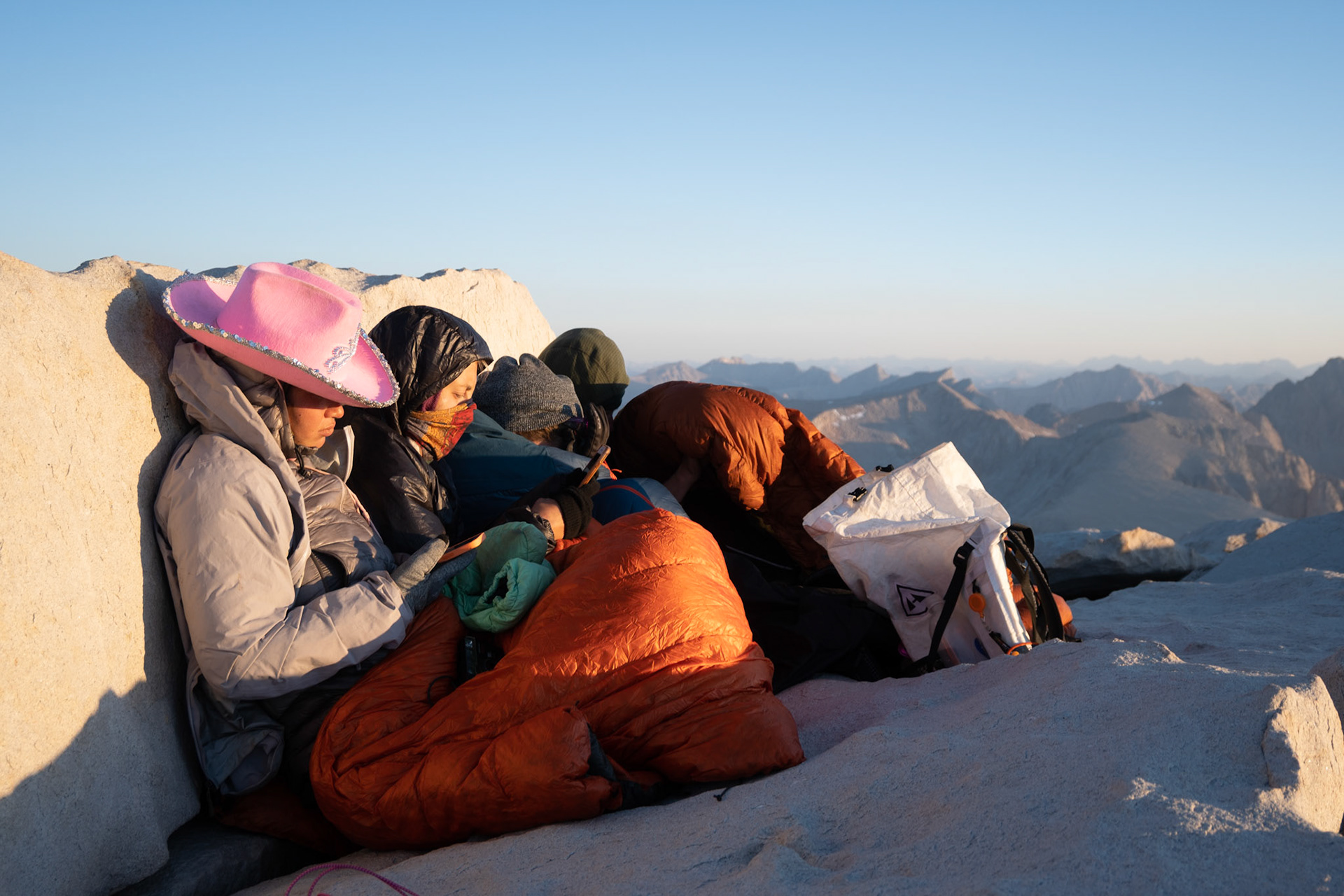 Spencer hiking down from summit of Mount Whitney.