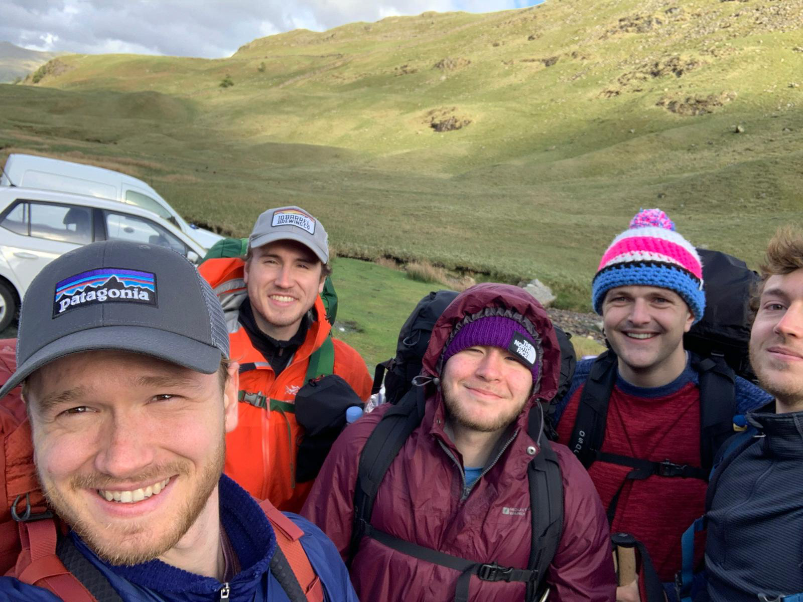 Starting off a hike in the Lake District with the brothers (far left and right) and two best mates from uni.
